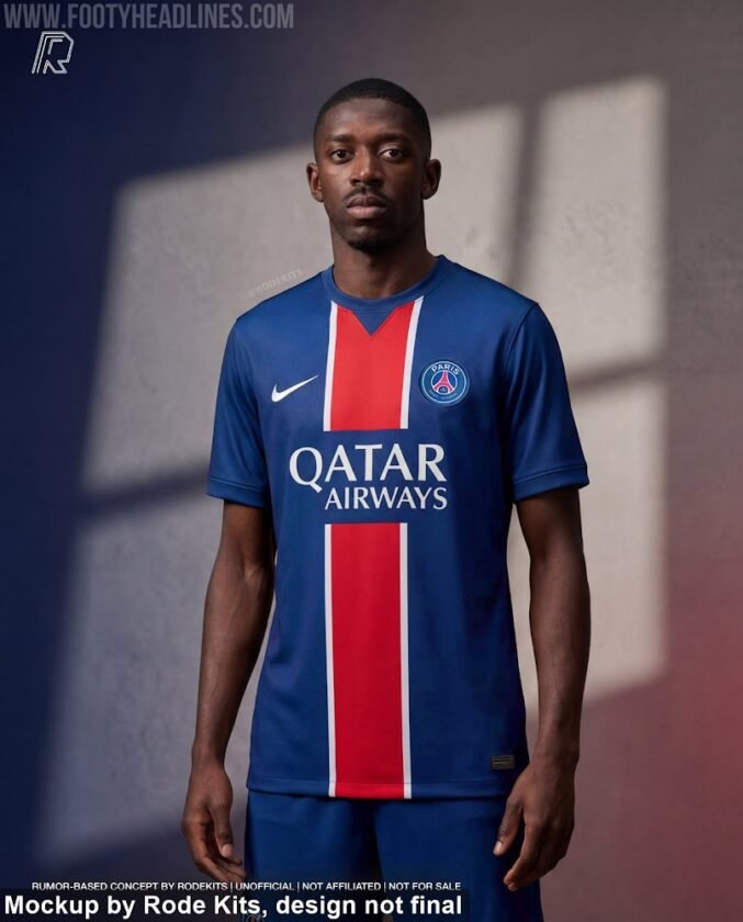 Le maillot domicile du PSG pour la saison 2026-2027 commence à se dessiner à travers plusieurs fuites concordantes. Selon les informations relayées par La Source Parisienne et Footy Headlines, confirmées par un mockup du designer Rode Kits, Nike reviendra à un design très identitaire pour le club de la capitale.