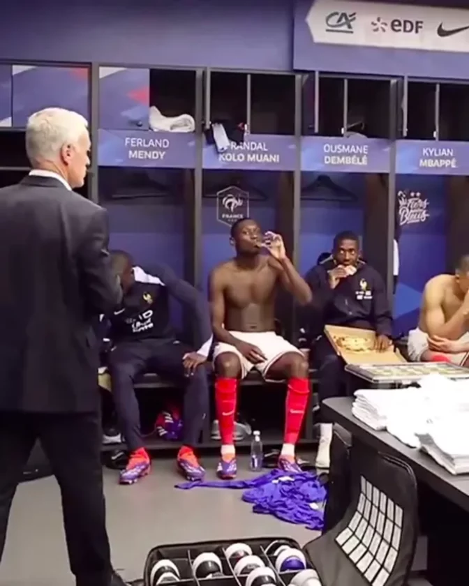Ousmane Dembélé s’est fait une petite pizza dans le vestiaire de l’Equipe de France.